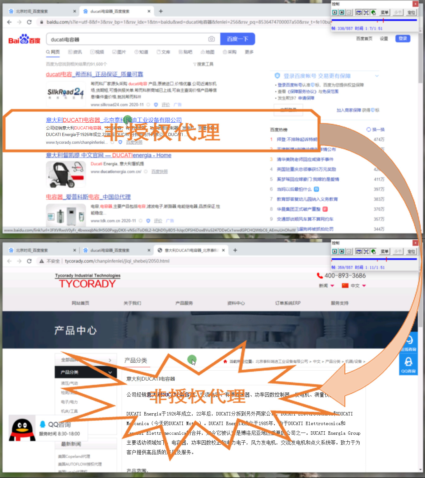 北京泰科瑞迪工业设备有限公司在互联网上注册建立tycorady为域名的网站,发布DUCATI energia 产品广告。其实,该公司与DUCATI energia S.p.A. 意大利督凯提能源股份公司及其中国地区总代理(北京博度科技发展有限公司)没有任何代理授权。